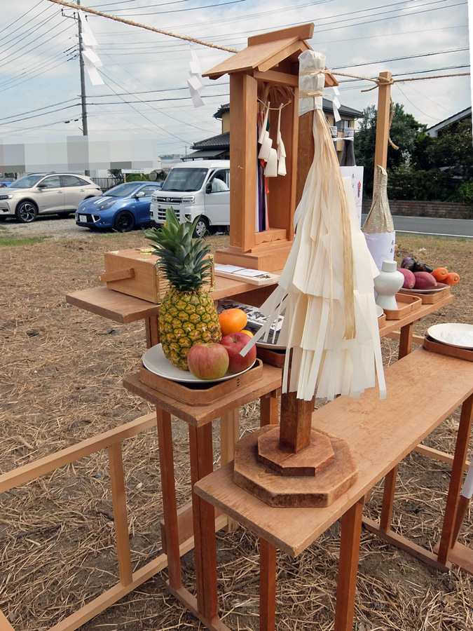 埼玉県川越市で地鎮祭が執り行われた。地鎮祭の奥に何やら黄色い不思議なものが見えている・・・。