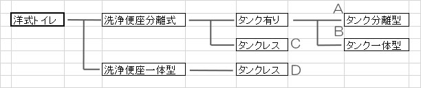 分離型の代表選手は便座ばかりかタンクまで分離しているTOTOならピュアレストEXだろう。これは上の表ではAになる。