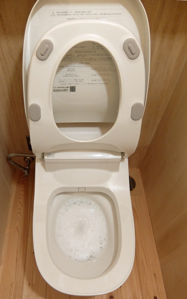 その点アラウーノS160の標準にある泡待機水面はその両方をみたしつつ水量も4.8Lにまで減らすことに成功しているらしい(私自身節水は水量が6L以下であればそれで十分と思っている)。実際に泡がない水面ではお釣りを多く貰うことも自身で体験している。但しデメリットして毎回の健康チェックが泡で隠れてできなくなることだろうという意見もあるし、樹脂の器はすでに発売から20年経つのでそりなりに技術がこなれている。その一方やはり便器は自身の好みに分かれるところも大きい。現在「緑の家」のオーナーさんはタンクまで分離している便器を選ぶ方が6割を超える。その状況でも「なぜ「緑の家」はこれから一体型のアラウーノS160標準とするのか」という質問を受けるがその理由は以下である。