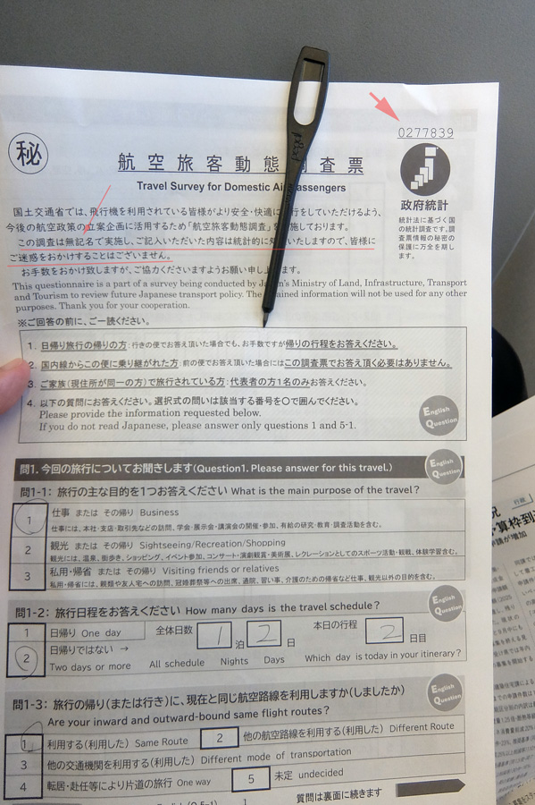 先日工事監理のために伺った広島市への往復で乗った飛行機内で、突然あるアンケート用紙が配られた。