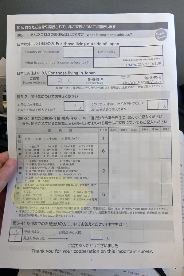 サラッと職業と年収の記載欄まであるので、不思議に思って回収時にCAに