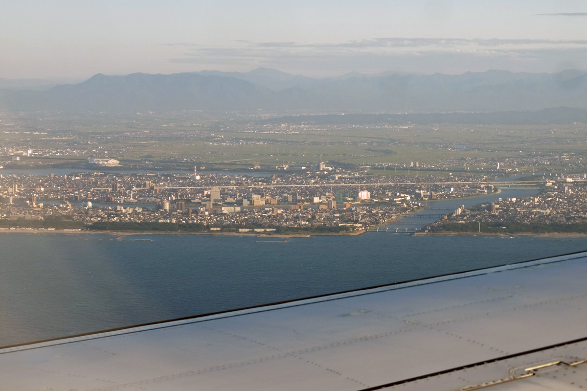 同じ行き先でも航路は天候や時間によって様々で今回は割と日本海の佐渡沖からの新潟空港着であった。
