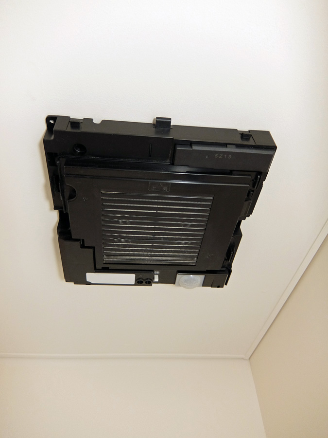 2台とも天井設置しているが、10年経た今でも正しく電気シャッターは閉じる。一階に設置されていたほうは、当初不安定だったがそれは羽についた汚れがひどく掃除したらしっかり閉じるようになった。
