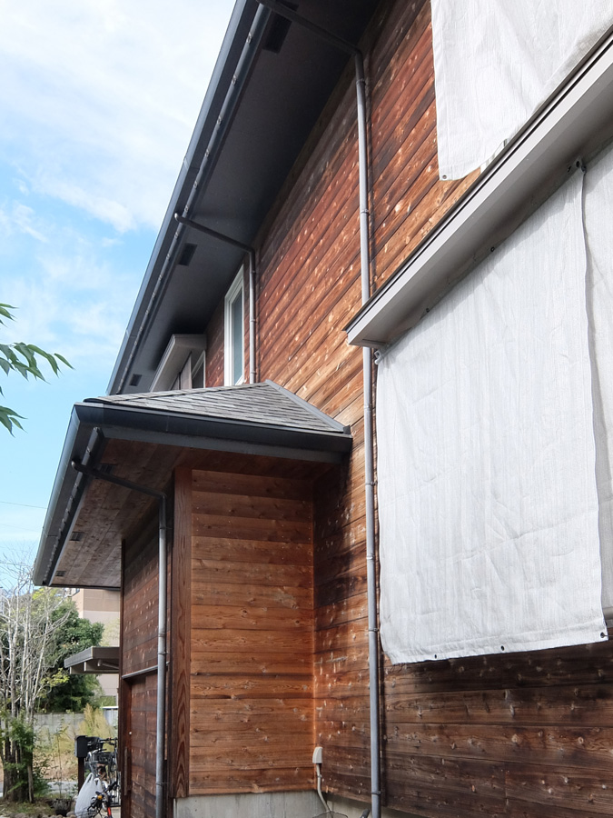 時が流れるのは早いもので以前HPのトップを飾っていた家富町の家の10年目のメンテナンスに伺ってきた。何しろ外壁の杉板が良い変化しており、美しい。当然性能は当時からUa値0.29w/m2kと超高断熱で耐震等級3である。