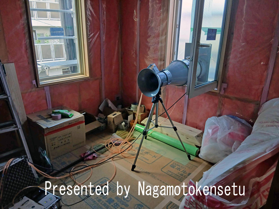 気密施工の王道であるプラスターボードで気密シートを抑えて測ると0.1㎝2/m2まで上がった。確かに2回目のプラスターボードがある状態は完成前にほぼ近いので注意深く条件設定(スリーブなど塞ぐこと)をしているが、0.2も違うとは思ってみなかった。今回の気密測定は施工会社さんが自社で持っているためこのように融通がきくようで大変ありがたい。