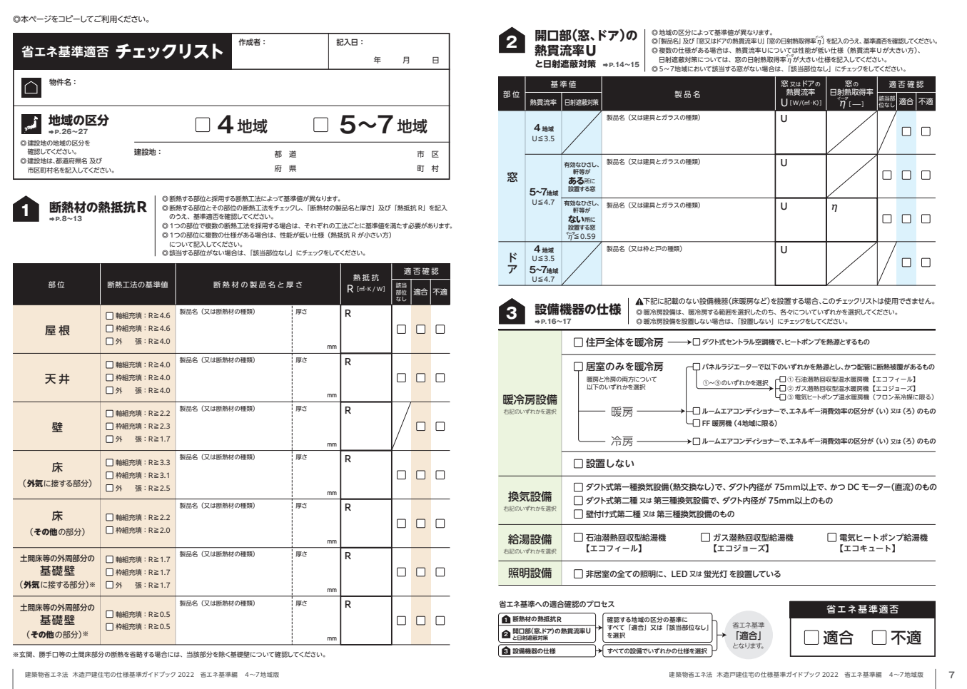1と2が断熱仕様規定記入箇所で、3が一次エネルギー計算の代わりのチェックリスト。