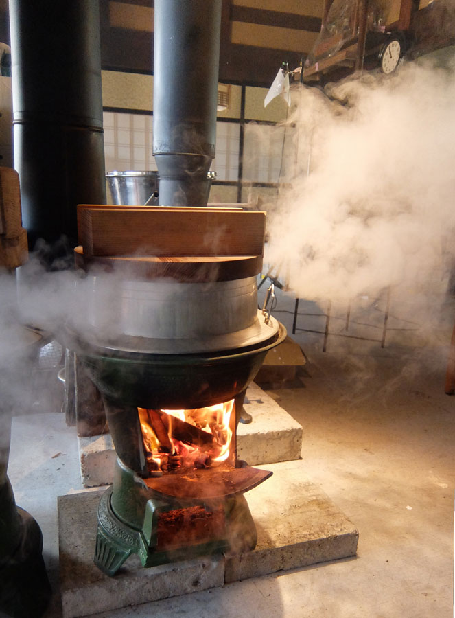 豪快に吹き上げる湯気が、釜の中でコメが踊っていることを想像させるが、どこで羽釜を外すか?そのタイミングの感覚が鈍ったようだ。