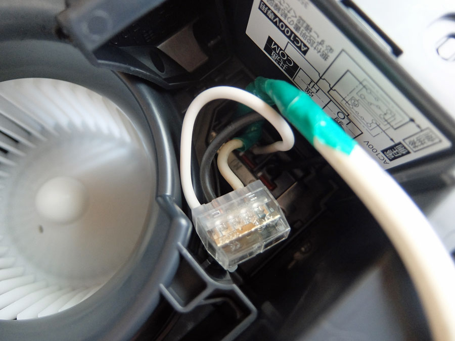 最初にスイッチ回路を自作する。簡易校正用換気扇は専用の強弱切り替えスイッチがいるが、これを簡単に自作。電気工事士の免許があるので自分で行えるのがうれしい。