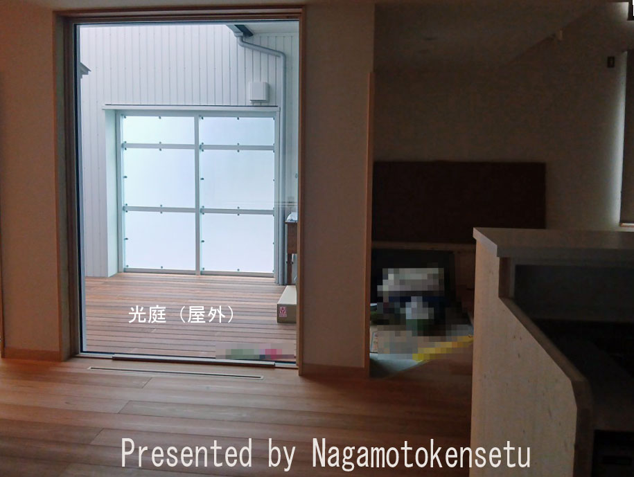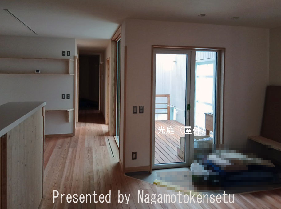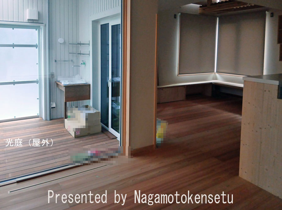 今週末に完成チェックに訪れる広島県広島市に建築中の「緑の家」の光庭の効果をチェックするために永本建設さんから写真を送って頂いた。