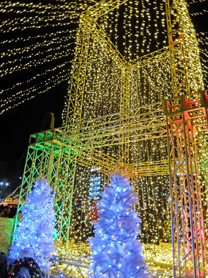 朝からこれまで計5回の新幹線のチケットを取り直してようやく東京駅で無事広島行きに乗ることができて安堵。こんなに騒がしい日程はあの原村の家以来であり、運が悪いというより厄落としができたと思って広島市に着いたのが、予定より2時間近く遅れの18時30分近く。その日は移動だけで業務予定を組んでいなかったので特に他の人に支障は出なかったのが不幸中の幸い。精神的に疲れた体で夕食を探すのは無理だったのだが、気を取り直して以前調べた昨日から始まっている広島市「クリスマスマーケット」で夕食をとることにした。
