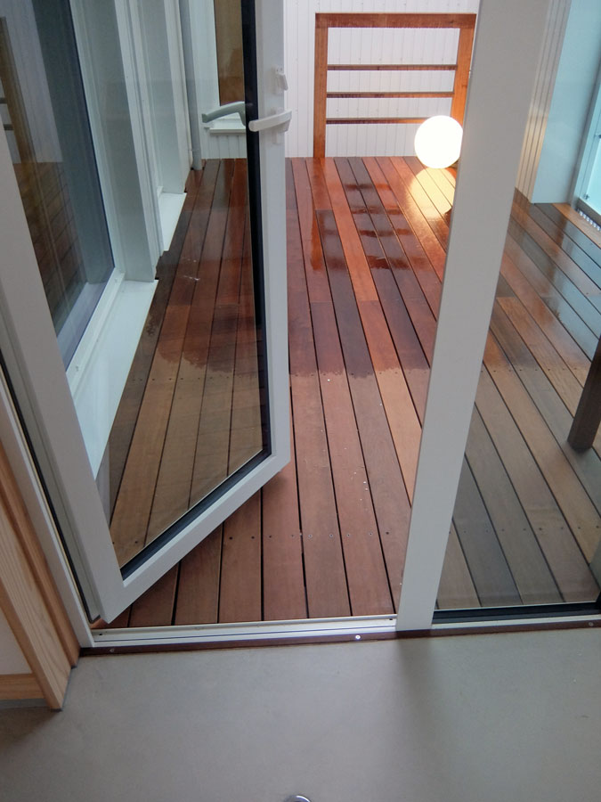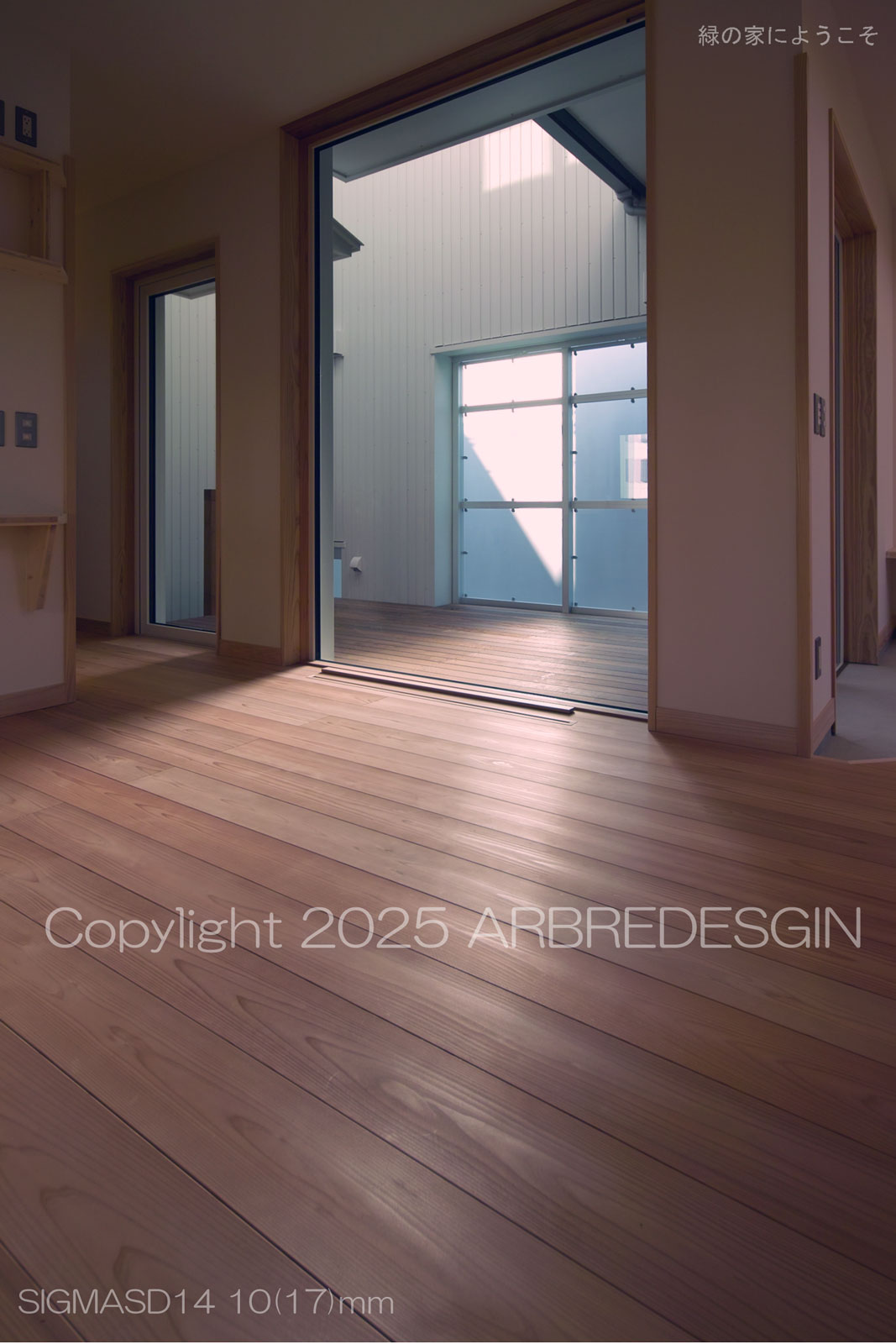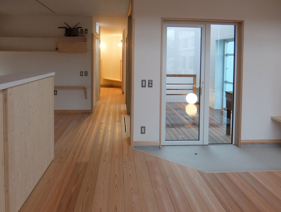 濡れ色のアイアンウッドの床が独特。アイアンウッドはすでに「緑の家」では20年以上の実績があり、未だ腐らない優れもの。