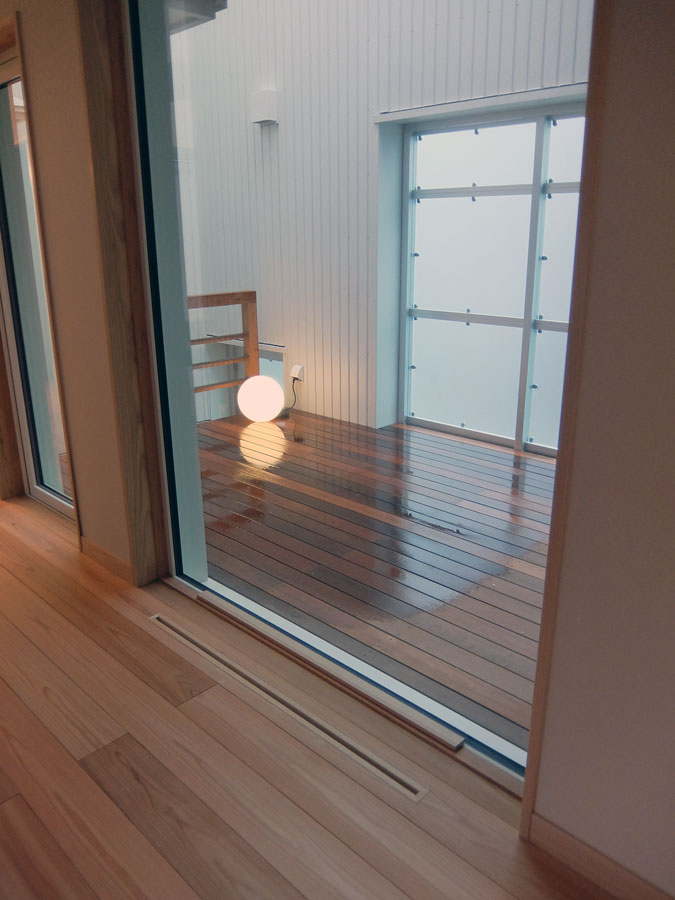 光庭に面した室内のサッシはトリプルガラスのFIXでは最大級の大きさで光庭とつなげている。