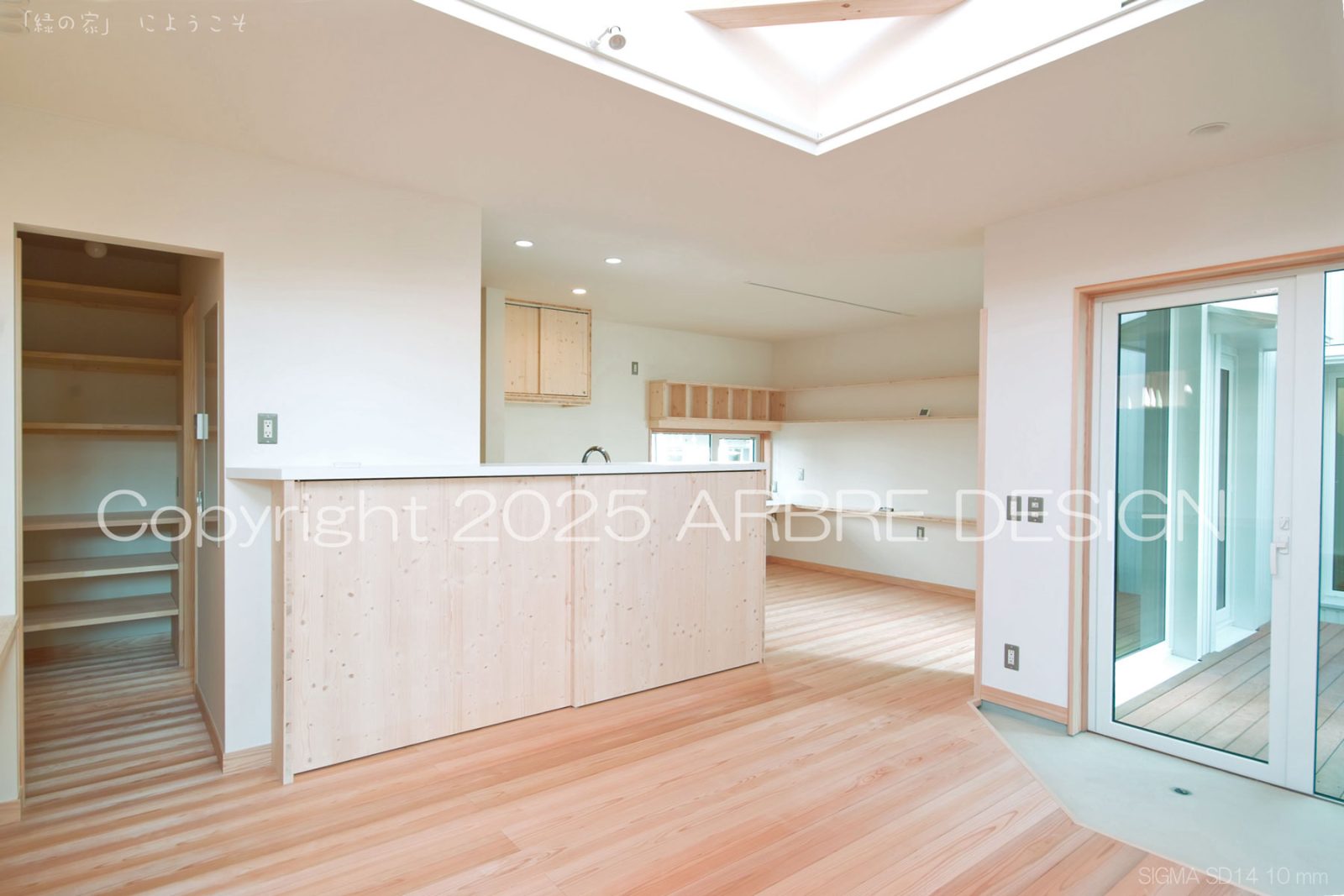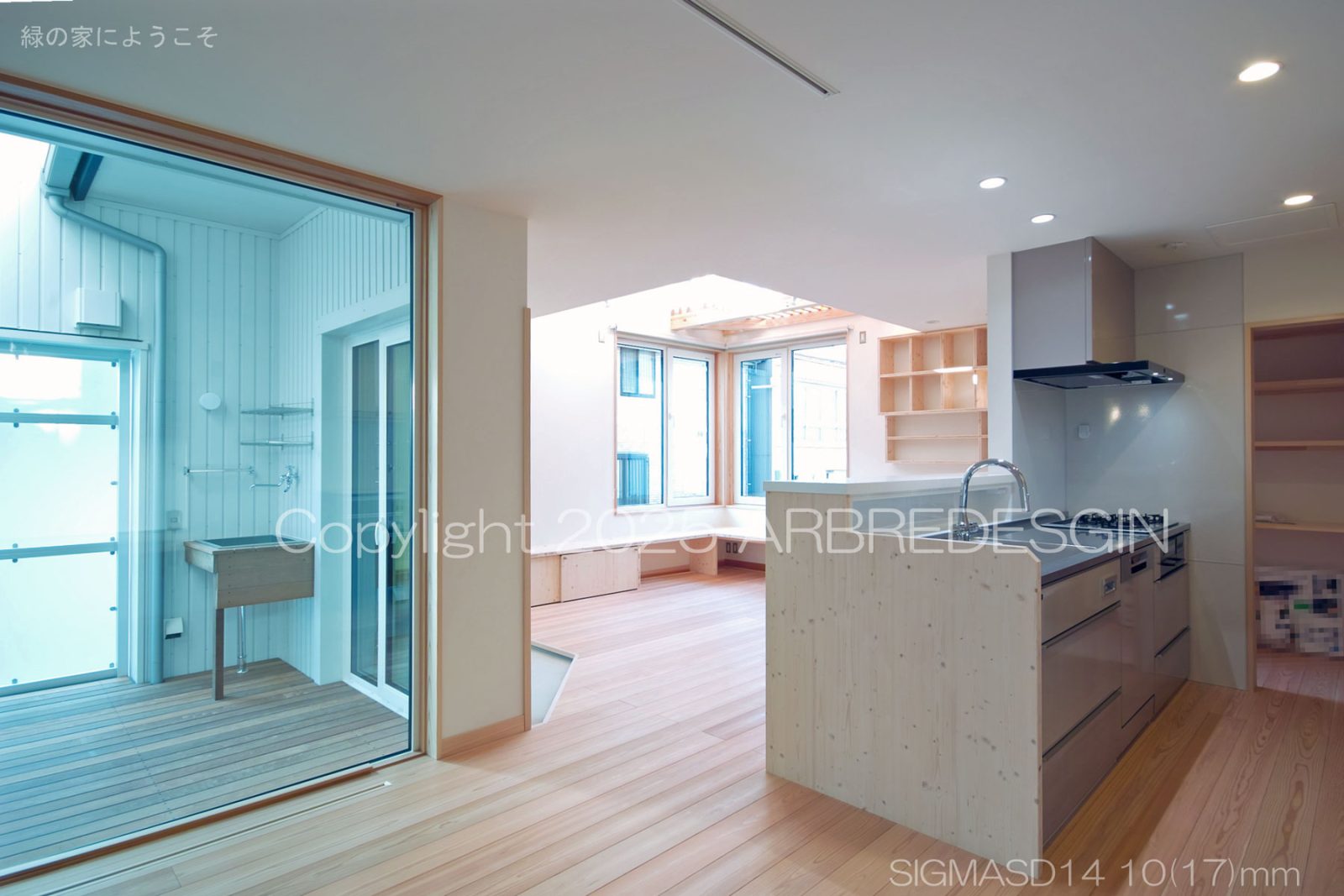広島南区の家で「キッチンに立った時に外の様子が見えると楽しいだろうな」と思いプランを作成したが、それは晴れた日も良いのだが雨の日もいい。