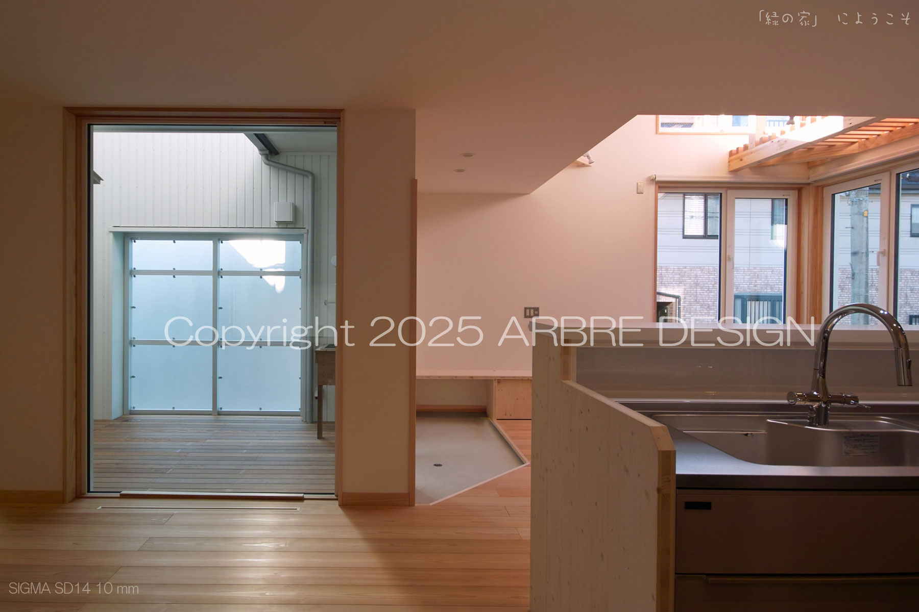 そしてこの大きな窓はダイニングテーブルからの見え方を最も重視している。当初は光庭に面する3つの窓の高さをそろえて設置しようと考えたが、やはり家族の談話の中心はダイニングテーブル。そのため最終的にこの窓だけは大きくした。