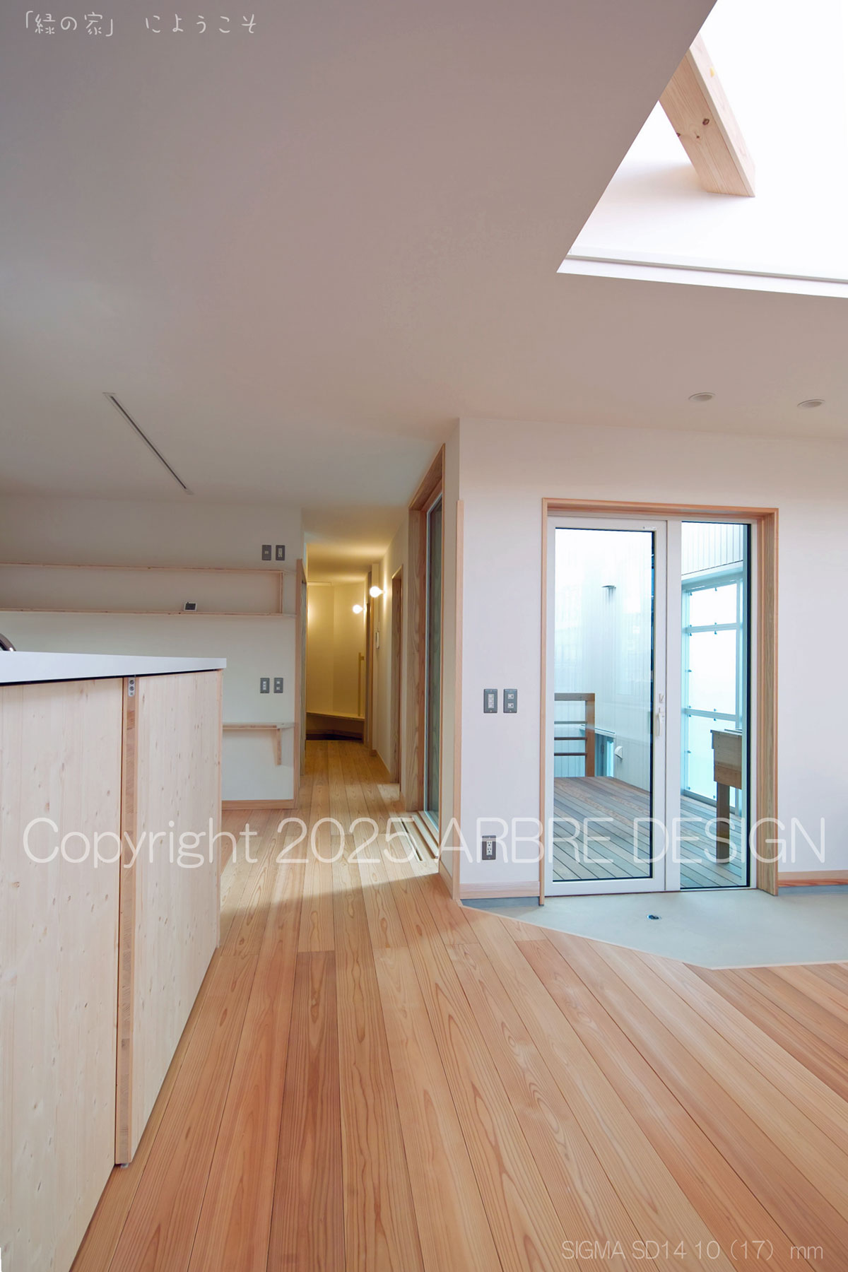 そしてダイニングスペースから家族の間の広間方向を見ると空間が豊かな広がりを見せる。