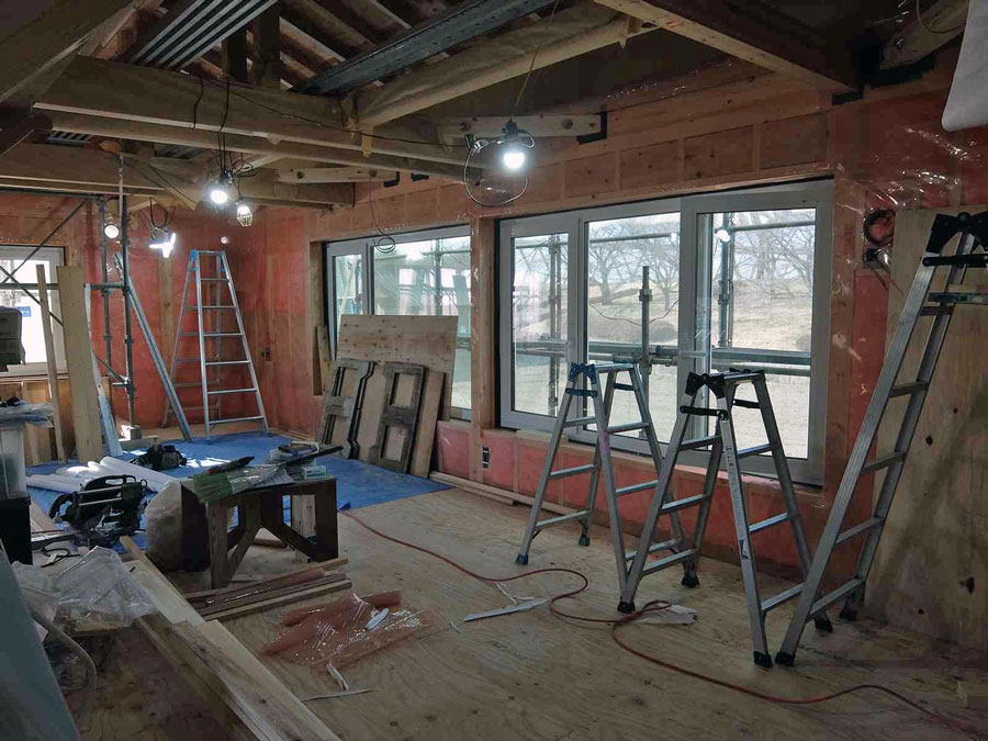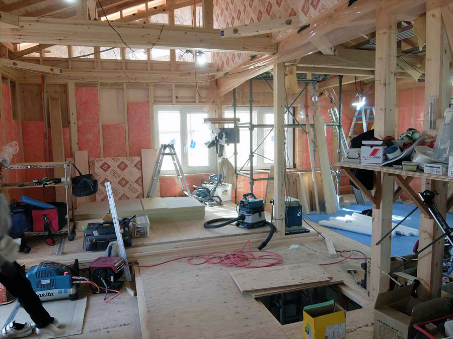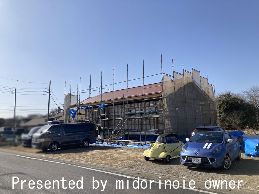 1月の終わりに埼玉県川越市に建築中の平屋の「緑の家」に防水検査に伺った。当然関東平野は晴が続いている季節なのでこの通り晴天・・・が、