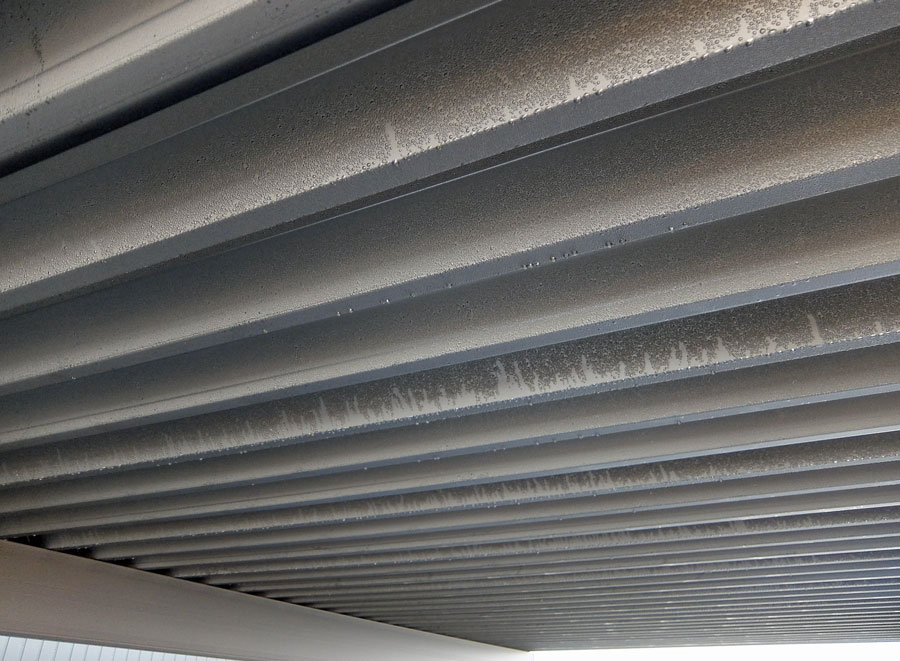 その雪だが、雪が積もった時にガルバニュームの屋根は瓦屋根より結露しやすい欠点がある。関東のようにたまにしか降らない地域は全く問題ないが、新潟県のように雪が屋根に残っている時に外気温が上がると、大気の露点も上がり露点が氷点下以上になると、ガルバニューム屋根裏で結露を引き起こす。実例としては・・・