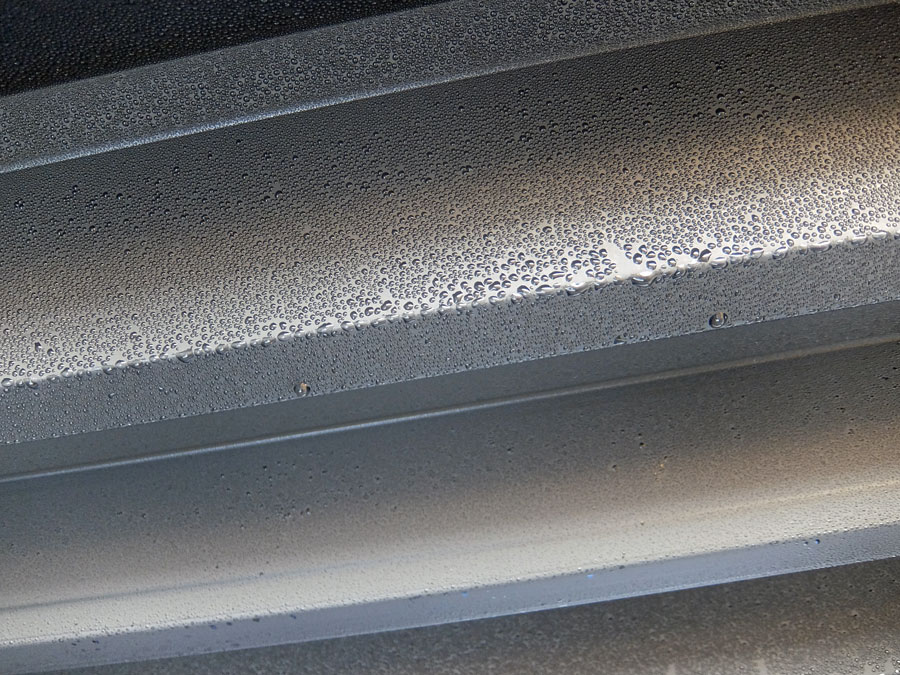 いずれにしても住宅のしっかりと換気されている小屋裏内でもこれと同様の条件になることがあり、雪国の屋根裏で結露していることがある。これを少しでも和らげるために「緑の家」ではガルバニューム鋼板(ゴムアスルーフィング)の裏が直接構造用合板ではなくシージングボードを敷いて少しでも合板が結露すること防ぐ対策を事務所設立以来行っている。このシージングボードは吸音効果もあるので当初は雨音防止の効果で設置しているものだと思っていたが、実は結露防止に大きな効果があると感じている。今度このデーターをとりエビデンスとしたい。