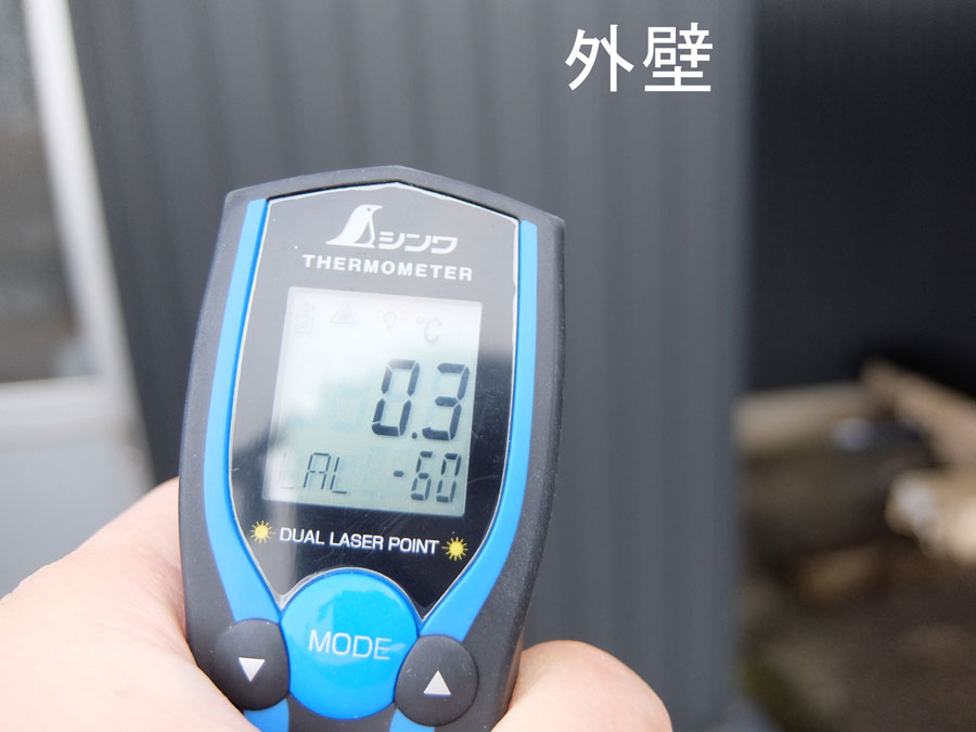 とやはり氷点下3度をしめすので結露するにはあたりまえである。念のため外壁を測ると、
