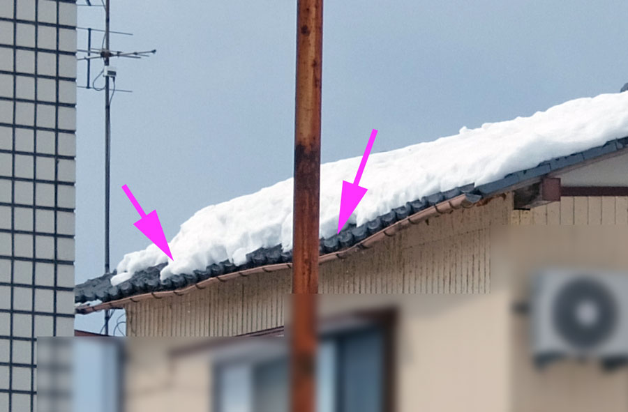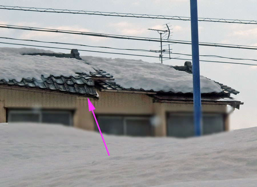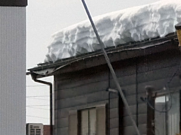 軒の崩壊はちょっと古そうな瓦屋根の家が多く、雨どいは新しい家でも起こっているようである。ただ単に雪が1mほど積もることは過去多くあるし、それが当たり前の長岡市や越路町。それが今回は、一度溶けて雪庇になったところで凍ってしまい、軒先に異様な重さをつけた固まりができた。その重さや落下で屋根や雨どい等が壊れた。