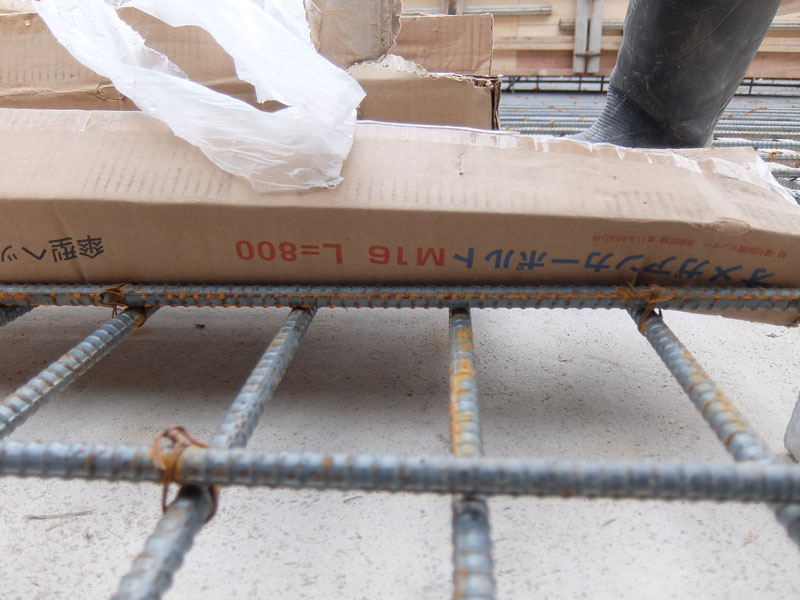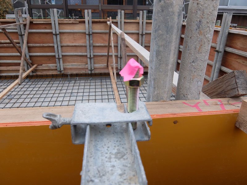 最も大事な引き抜き用アンカーボルトM16 は長さ800の先端フック付きのモノを使って50KNの引き抜き力に耐える。「緑の家」ではM12のアンカーボルトも拘っており、L=500 のモノを使う。