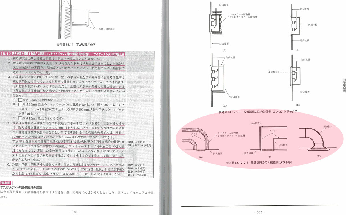 住宅支援機構の省令準耐火構造の抜粋(木造住宅工事仕様書解説付p304)スイッチ及びダクトの構造