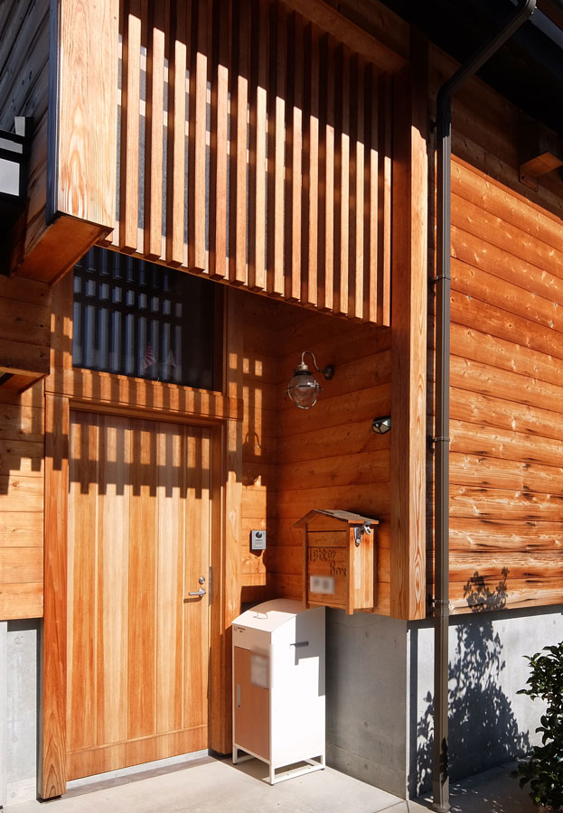 雨が当たりにくい東向きの外壁は、綺麗なあめ色になっており、鉄くぎも同調した色となる。