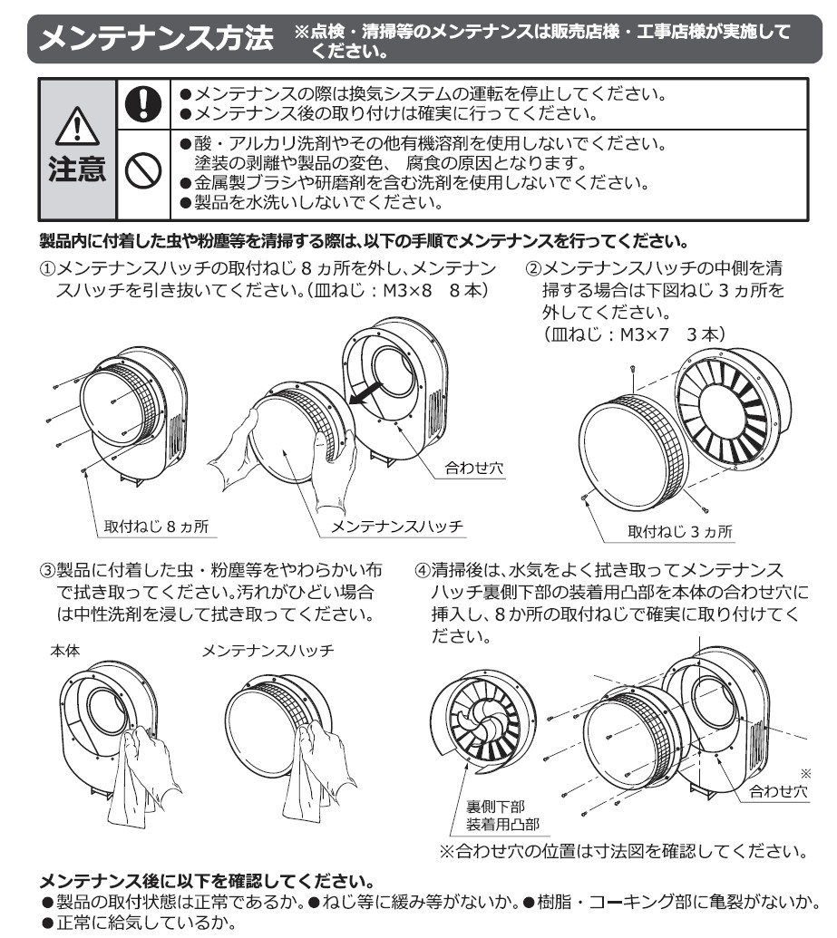 ここでは販売店や工事店がメンテナンスしてくださいとあるが、このくらいなら建て主さんだろう。