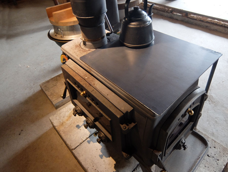 もう13年使った「て・こあ」の薪ストーブは鉄板製なので立ち上がりも早く、また天板の温度調節もタイムリーにでき、しかも広い天板面を持っていたためストーブ調理がとても楽にできた。
